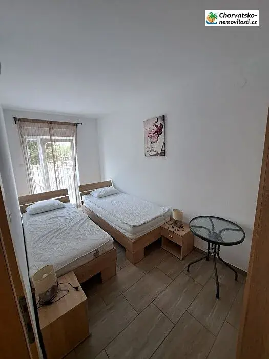 CHORVATSKO-NEMOVITOSTI.cz Vám nabízí prostorný třípokojový apartmán 69,52m2 v přízemí, disponuje dvěma terasami s vířivkou a oplocenou zahradou pro příjemné večery či snídaně venku. Apartmán je klimatizovaný, moderně a vkusně zařízený, jsou použity pouze kvalitní materiály a nábytek. Nachází se v přízemí apartmánového domu. Před domem jsou parkovací místa, pro váš vůz. Krásné pláže Lokunje a Vrtić, stejně jako centrum Novalje, jsou vzdáleny pouhých patnáct minut chůze stejně jako centrum Novalje. Pláž je písčito-oblázková a je včetně sprch a sociálních zařízení. Nedaleko jsou obchody, restaurace a pizzerie případně kebab. Do města Novalja se dostanete pohodlnou kvalitní silnicí z trajektu nebo z mostu, spojující pevninu a ostrov Pag.