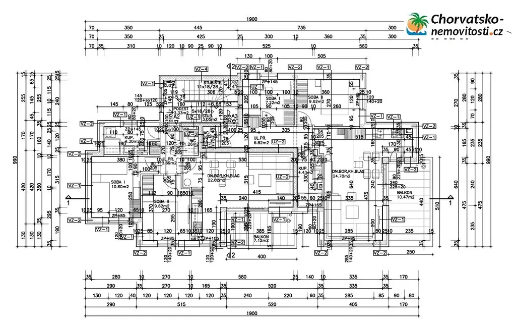 Špičková kvalita konstrukce: byty mají parkety, elektrické žaluzie, tři klimatizace na byt instalované v obývacím pokoji a ložnicích.
