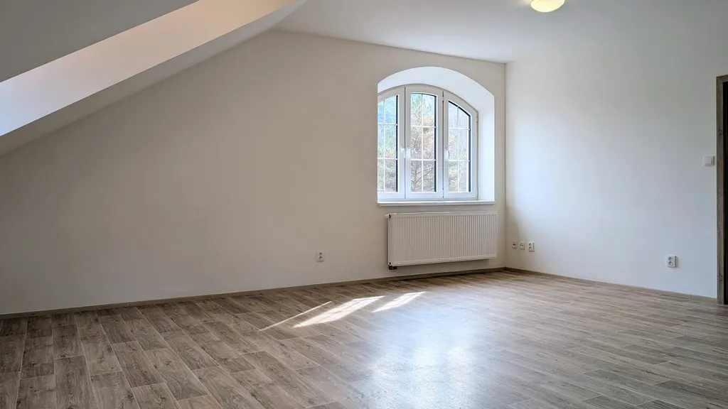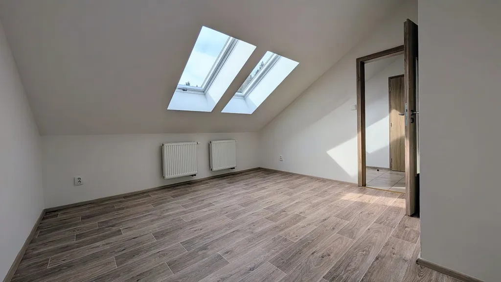 Velkou předností tohoto bytu je jeho orientace na všechny světové strany, díky které je krásně prosvětlený po celý den. Jedná se o příjemné podkrovní bydlení s dostatkem prostoru pro rodinu i pohodlné zázemí pro práci z domova.
