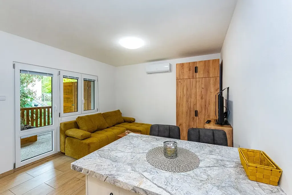 Byt je vybavený novou kuchyňskou linkou, sklokeramickou varnou deskou, troubou, lednicí a pračkou. Koupelna se sprchovým koutem a zařízený novým nábytkem.