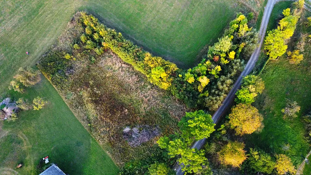 Pozemek je přístupný po zpevněné obecní cestě a – kdyby vás to napadlo – dá se dokonce rozumně rozdělit na dvě části. Prostě možností je tu víc než dost.