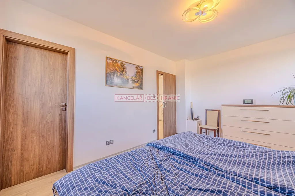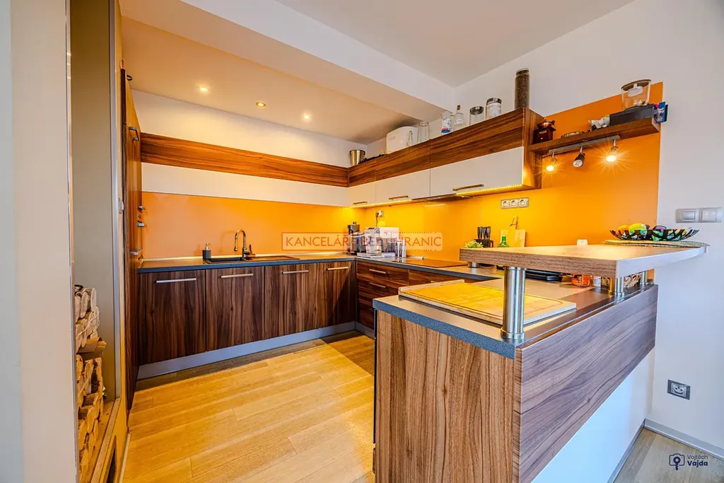 Součástí prodeje je také vestavěný nábytek, který podtrhuje praktické a promyšlené řešení interiéru.