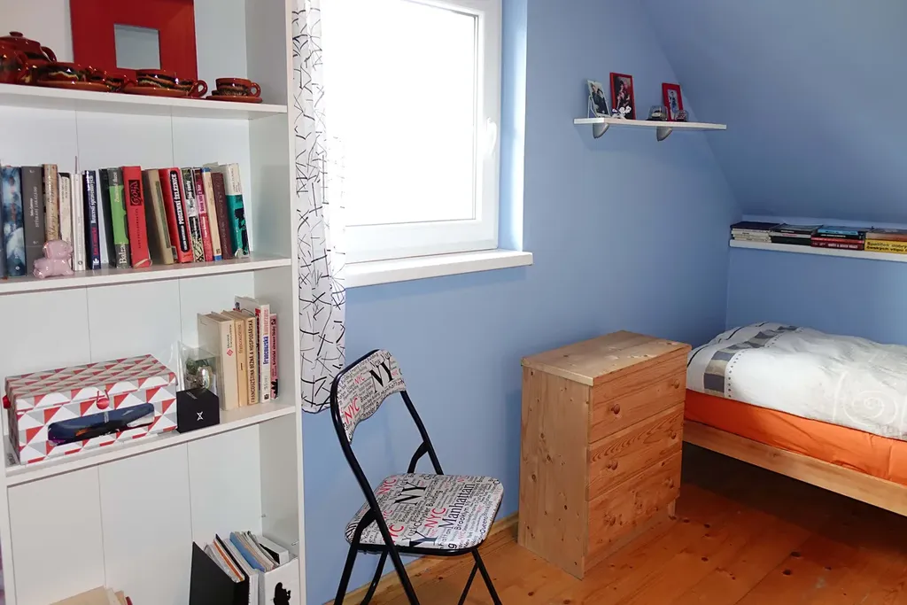Chata je částečně podsklepena, v přízemí je obývací pokoj s kuchyní a v patře dvě ložnice. K dispozici je zastřešená terasa s posezením. Voda je z vlastní studny, ohřev teplé užitkové vody elektrickým bojlerem, WC a sprchový kout (odpad do septiku), vytápění lokální krbovými kamny. Parkování v krytém stání před chatou.