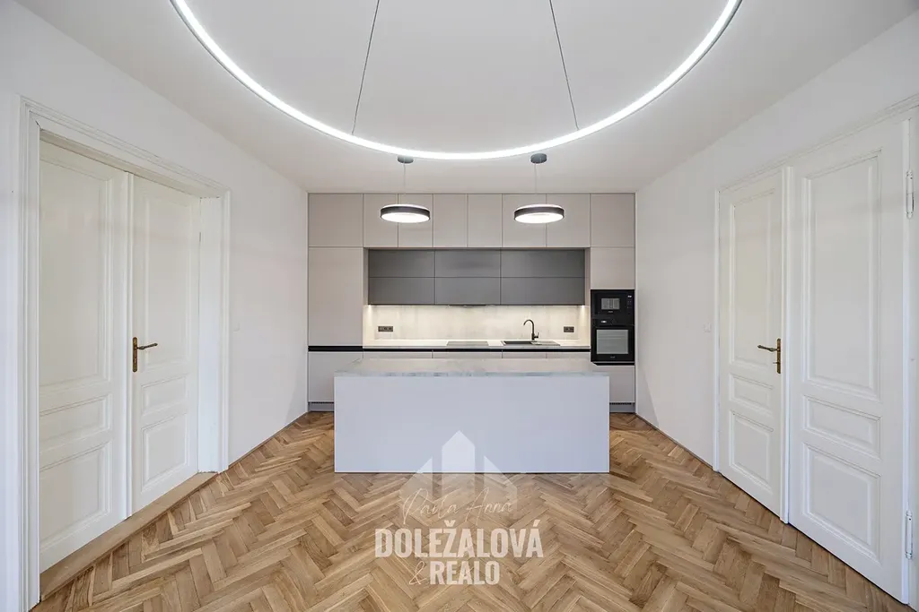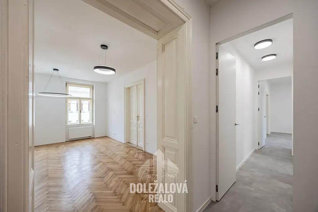 Dispozice nabízí velkorysý obývací prostor s kuchyňským koutem, několik samostatných pokojů (vhodné jako ložnice, pracovna či dětské pokoje), koupelnu, 2x toaletu a dostatek úložných prostor. Byt je světlý, vzdušný a díky své velikosti ideální pro náročnější klienty, rodinu nebo kombinaci bydlení a práce z domova.