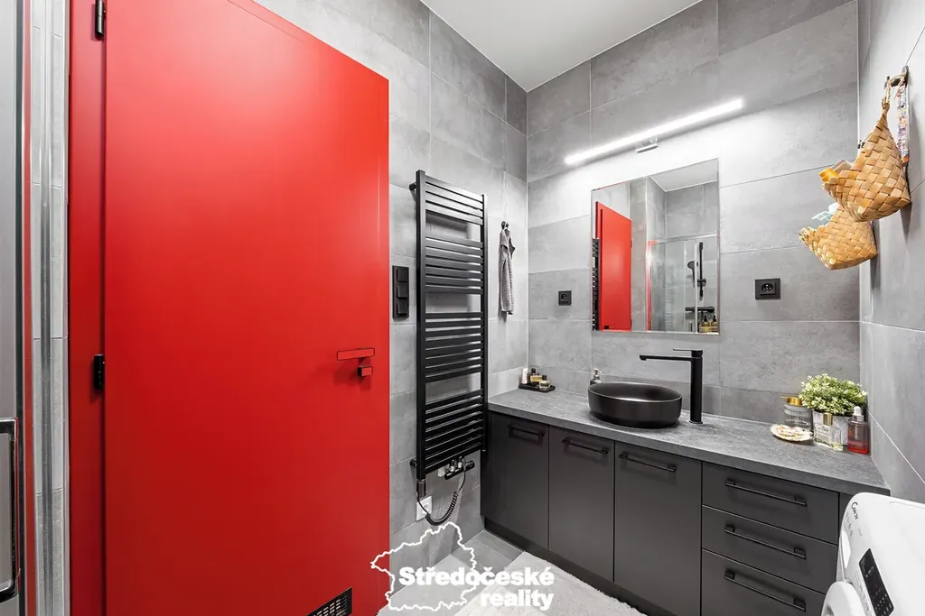 - koupelnu se sprchovým koutem, WC a topným žebříkem