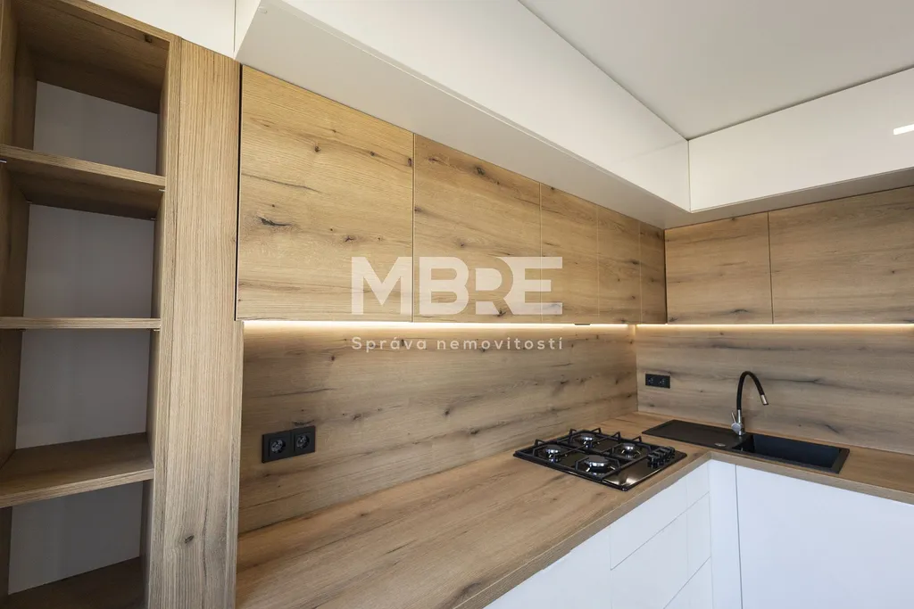 Najdete zde novou kuchyňskou linku s vestavnou troubou, varnou deskou a digestoří., nové podlahy. Koupelna je moderní a vybavená vanou, novými obklady, umyvadlem se skříňkou a WC.