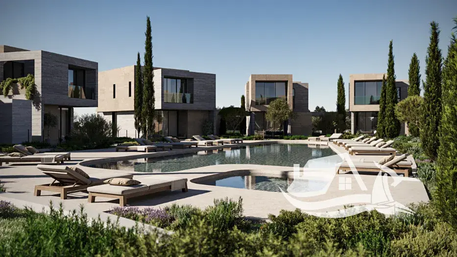 Každá vila je navržena jako moderní nadčasový domov u moře – čisté linie, elegantní styl, kvalitní materiály a důraz na prostor a světlo.