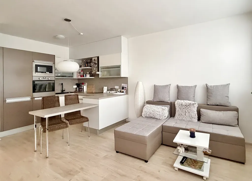 Součástí bytu je moderní kuchyňská linka včetně kvalitních vestavných spotřebičů značky Electrolux, která tvoří přirozené srdce celého bytu a nabízí komfortní zázemí pro každodenní život.