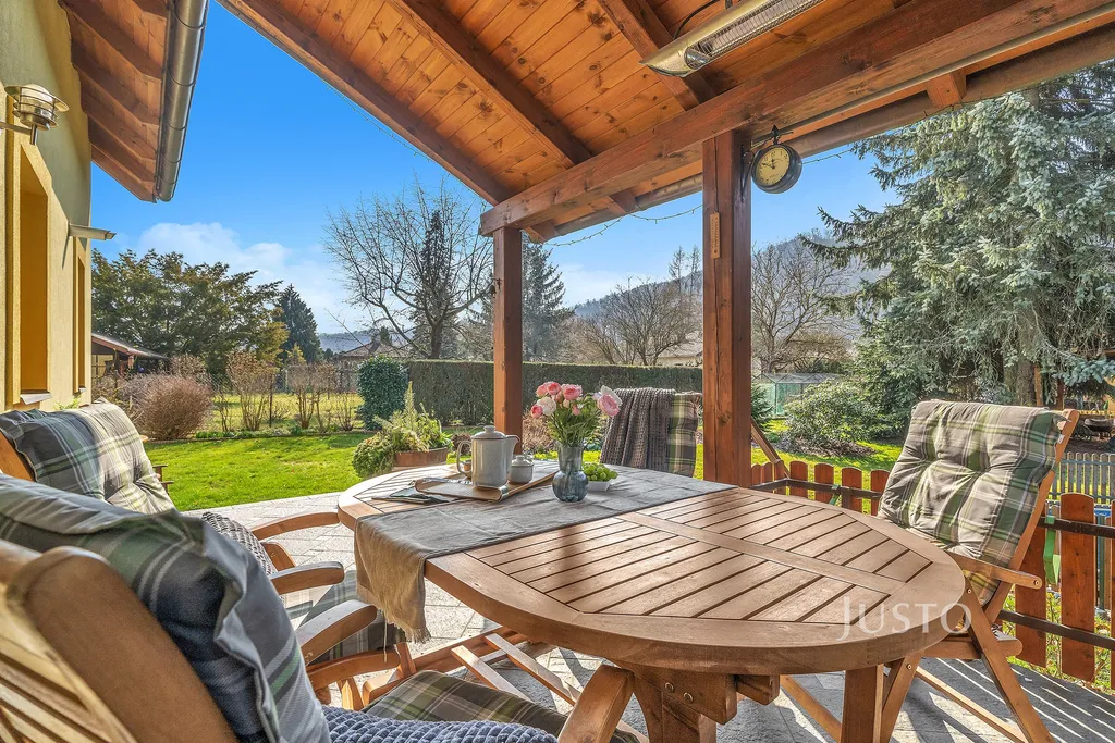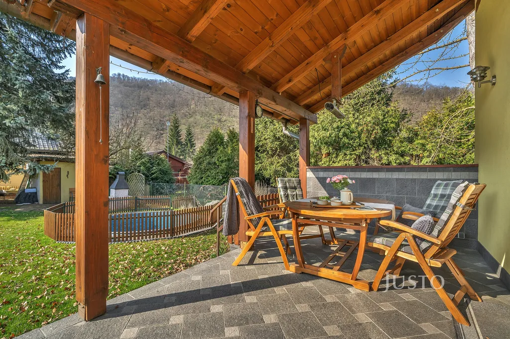 Chata stojí na pozemku o celkové ploše cca 646 m² a nabízí užitnou plochu cca 120 m².