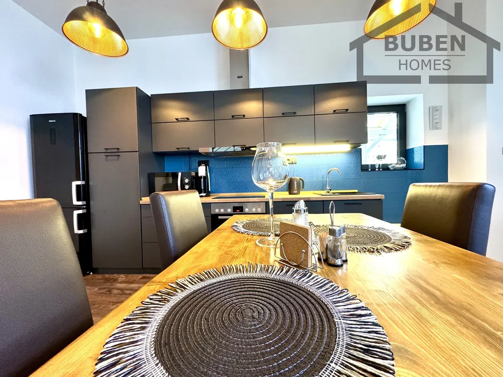 V zadní části domu byla v roce 2024 nově vybudovaná nadstandardní, samostatná, mezonetová jednotka 3+kk. Užitná plocha této jednotky je cca 90 m2. Tyto prostory tvoří vstupní chodba, prostorný obývací pokoj s kuchyňským koutem s krbovými kamny se schodištěm do patra a prostorná koupelna s WC (vana, sprchový kout). Dále je zde vstup na zahradu s drobnými stavbami, která nabízí příjemné posezení. V patře jsou k dispozici dvě ložnice a WC. Vytápění této jednotky je podlahové elektrické (v přízemí), v patře elektrickými topnými panely. Jednotku je možné vytápět zároveň krbovými kamny. Tato jednotka je určena pro klienty s vyššími nároky na bydlení. V současné době je také pronajatá (bližší info bude předané při prohlídce).