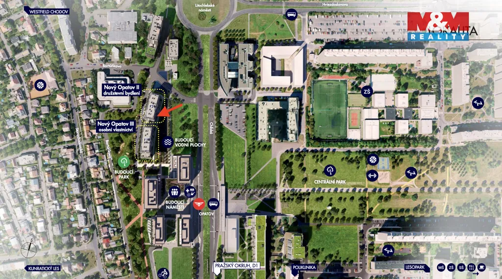 Nabízíme k prodeji moderní slunný rohový byt 5+kk s užitnou plochou 106 m² a prostornou lodžií (17 m²). V ceně dvě parkovací stání. Nachází se v 7. patře nově vznikajícího projektu Nový Opatov od developera Finep. Jedná se o převod družstevního podílu, kde na počátku zaplatíte 4.890.000 Kč a zbývající nesplacenou anuitu 13.109.526 Kč začínáte splácet po převzetí bytu formou pravidelných měsíčních splátek. Aktuální měsíční splátka anuity činí 66.715 Kč včetně příslušenství a je nyní nastavena na 35 let. Není třeba hypotéka ani dokládání příjmů. Kolaudace již v květnu 2028, byt je možno prozatím uzpůsobit svému vkusu. Opatov patří k lukrativním částem Prahy, díky metru, které se nachází jen pár minut od projektu a celkové občanské vybavenosti. Zajímavá nabídka, jak pro vlastní bydlení, tak na investici. Neváhejte nás kontaktovat.