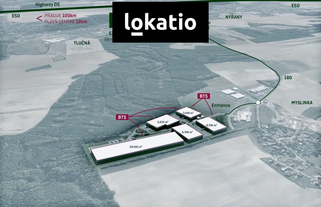 Nabízíme k pronájmu prostory v moderním průmyslovém parku u obce Myslinka nedaleko Plzně. Park nabídne reprezentativní budovy upravitelné dle přání zájemce na ploše 63 936 m2 a také snadný přístup na dálniční tah D5. Lze využít pro skladování, logistiku i lehkou výrobu.