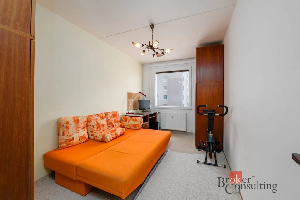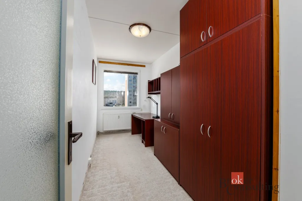 Dispozice bytu tvoří obývací pokoj, dvě samostatné ložnice, kuchyň, koupelna, dvě samostatné WC a praktická menší místnost využitelná jako pracovna, šatna nebo úložný prostor.