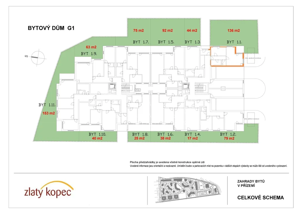 Dovolujeme si Vám nabídnout pronájem nového bytu 2+kk s velkou zahrádkou, který se nachází v 1.NP moderního projektu Zlatý kopec z roku 2025. Bytový projekt s moderními prvky a kvalitním vybavením je umístěn v těsné blízkostí s pražskou čtvrti Vinoř a má vynikající dopravní spojeni s Prahou. Plocha bytu je 54 m2 + předzahrádka 136 m2. Byt se nabízí částečně zařízený, na žádost nájemce majitel ochoten dodat lednici a pračku. Byt má komoru. K bytu patři sklep o výměře 3 m2 a vyhrazené parkovací stání před domem. Topení dálkové ústřední. Orientace bytu je na východ a jih. Obec Přezletice s širokou občanskou vybavenosti nabízí svým obyvatelům pohodlné bydlení v blízkosti hlavního města a přímé spojení do stanice metra Letňany, Palmovka a Prosek, kde se dostanete za 15 min. Cesta autem do stanice metra Letňany trvá ca 10 minut. Nájemné činí 23.000,- Kč/měsíc, zálohy na služby ve výši 2.900,- Kč/měsíc, elektřina se převádí na nájemce. Při podpisu smlouvy nutno složit kauci ve výši 26.000,- Kč a provizi RK ve výši 26.000,- Kč. Volný ihned. Více informací v RK.