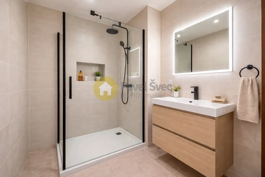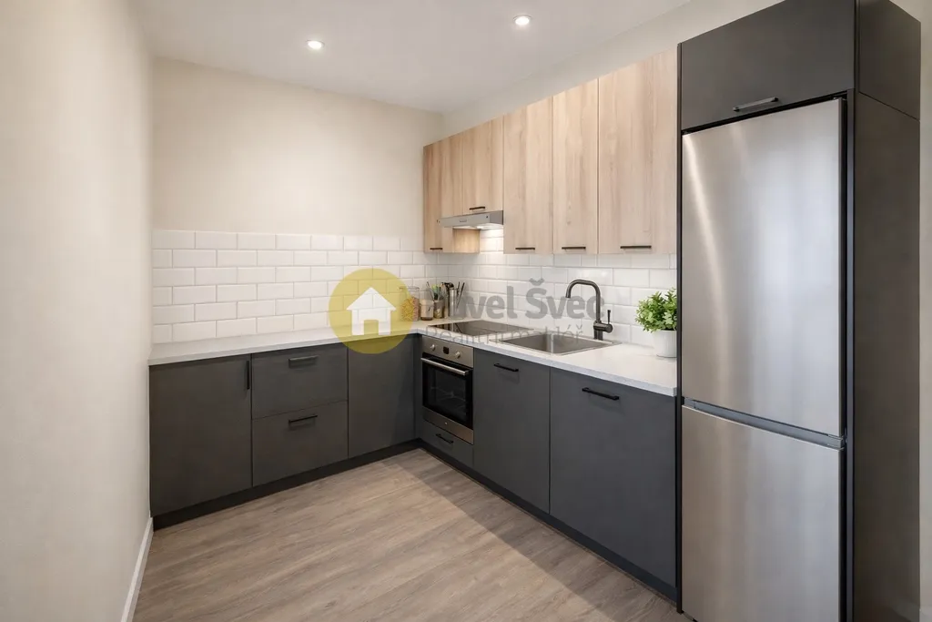 Upravená/obložená koupelna, modernizovaná kuchyně, položené plovoucí podlahy, vyměněná okna-plast.