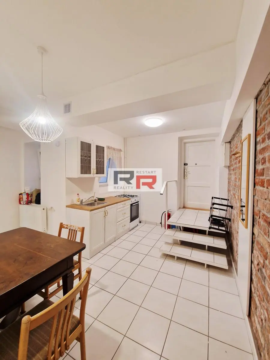 Pronájem suterénního bytu 2+1 o velikosti 57m2 v Olomouci - ul. Masarykova třída . Jedná se o byt v suterénu cihlového domu po rekonstrukci. Na podlazee je vinyl. podlaha a dlažba. V koupelně je vana vč. přípojky na pračku, wc samostatně. Byt se pronajímá částečně zařízen viz foto: kuchyň. linka vč kombinovaného sporáku, jídelní stůl + 3 žídle, lednice s mrazákem, pračka, sedací souprava, šatní skříň, police, psací stůl, komoda, konfer. stolek, el. odvlhčovač. Topení bytu je zajištěno vlastním kombinovaným plyn. kotlem včetně ohřevu vody. Dále jsou k dispozici malá přenosná krbová kamna. V celém bytě jsou plastová okna včetně žaluzií a fólií, K bytu lze využít společný dvůr s vlastním posezením.