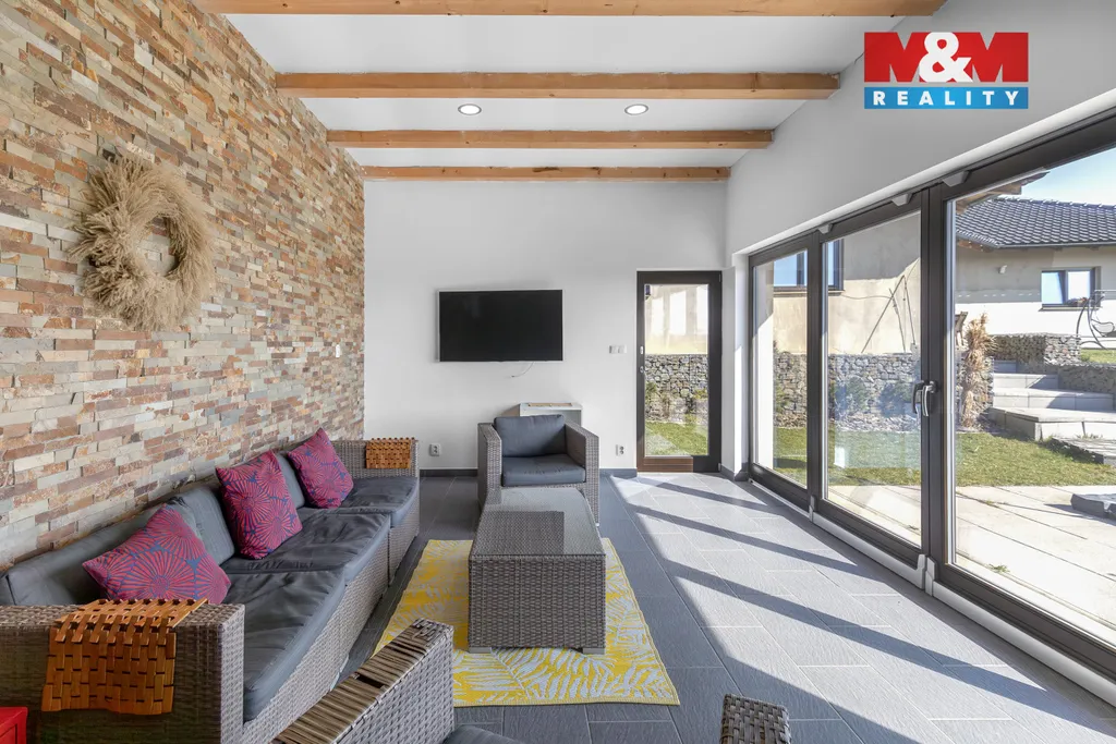 Nabízíme Vám k prodeji rodinný dům o dispozici 5+kk o celkové užitné ploše 190 m2 na klidném místě obce Jistebník s celkovou výměrou pozemku 1989 m2. Z prostorné chodby jsou vstupy do samostatných dvou dětských pokojů, ložnice, technické místnosti a dvou koupelen s WC. Dále přes křídlové dveře se dostanete do společného prostoru obývacího, jídelního, kuchyňského a relaxačního prostoru s krbem s teplovzdušnou vložkou. Tady je výstup na terasu, orientovanou na jižní stranu, spolu s letním obývacím pokojem. Dům je napojen na obecní vodovod, přes čističku odpadních vod na obecní kanalizaci. Podlahové vytápění a ohřev vody zabezpečeno tepelným čerpadlem vzduch-voda, PENB "A". K dispozici prostorná garáž s úložným prostorem. Náš hypoteční specialista Vám nabídne nejvhodnější financování této výjimečné nemovitosti.