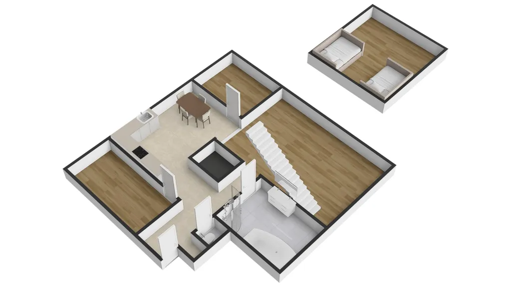 Vzdušný a velmi příjemný interiér je plně vybaven vkusným nábytkem i spotřebiči. K dispozici je velký obývací pokoj s pracovním koutem, kuchyň s jídelním koutem, samostatná ložnice, obytný prostor v podkroví, koupelna s vanou i sprchou, toaleta a vstupní chodba s vestavěnou skříní. Dřevěné prvky krásně podtrhují originalitu místa. Dům se nachází v klidné okrajové části města v blízkosti přírody i lesoparku. Benefitem je bezplatné parkování v ulici i okolí.