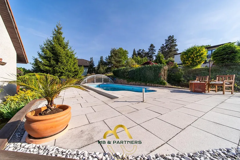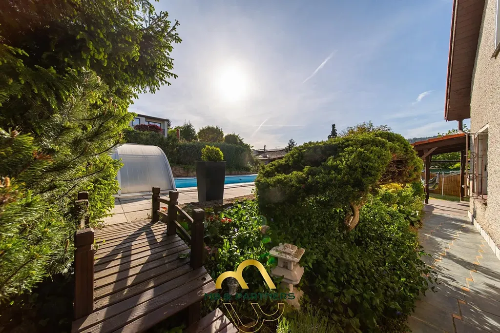 Kvetoucí zahrada se vzrostlými stromy nabízí dostatek prostoru, příjemné soukromí si užijete u bazénu i ve venkovním západně orientovaném zákoutí terasy za domem s grilem. Bazén z roku 2009 o velikosti 8 x 4,5 m, plněný ze studny, s filtrací a ohřevem vody tepelným čerpadlem, dopřeje luxusní koupání s výhledy z kopce Samohelka, co Vás neomrzí.