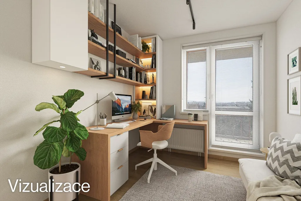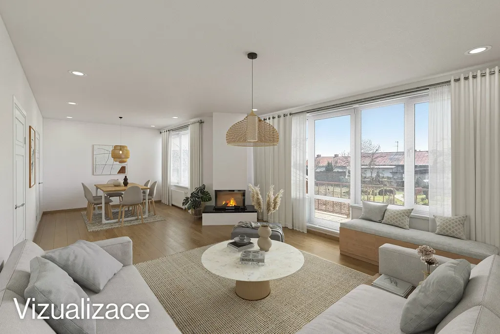 Součástí prezentace jsou také vizualizace, které ukazují možný budoucí stav po rekonstrukci a slouží jako inspirace pro budoucí využití a uspořádání interiéru.