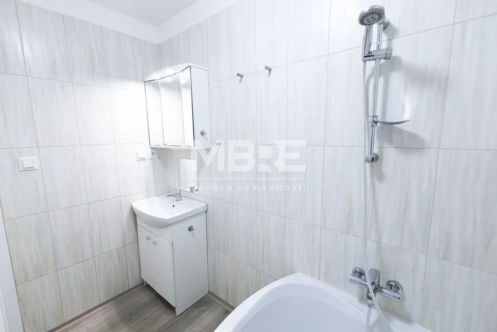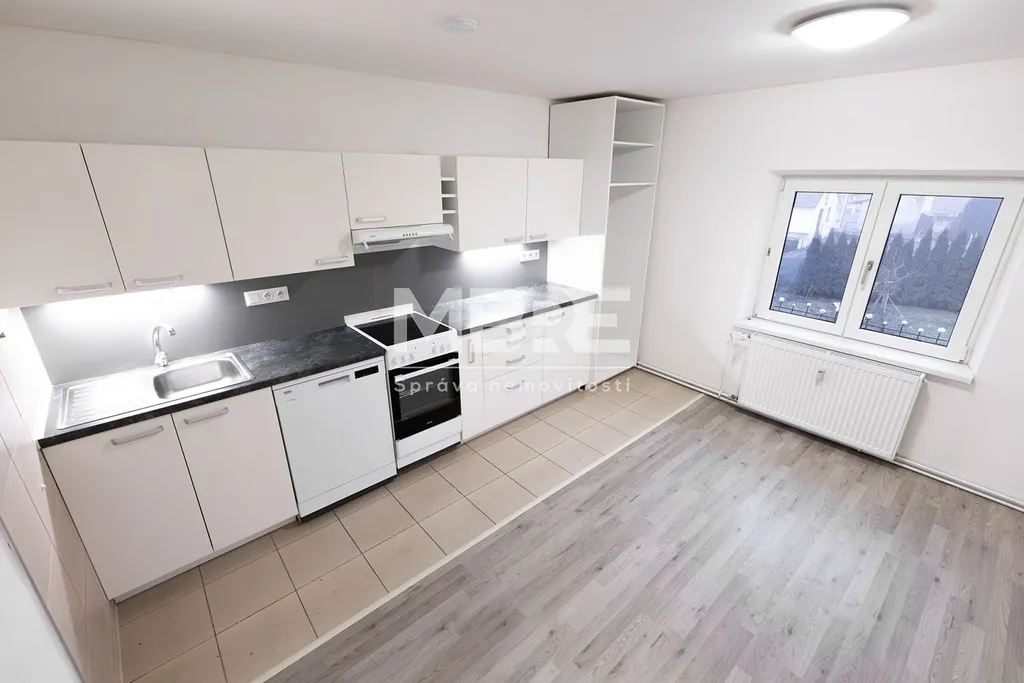 Byt disponuje prostornou kuchyní s místem pro jídelní stůl, dvěmi pokoji, koupelnou s rohovou vanou a umyvadlovou skříňkou a samostatným WC. O teplo se stará elektrický kotel, takže si komfort snadno nastavíte podle potřeby.