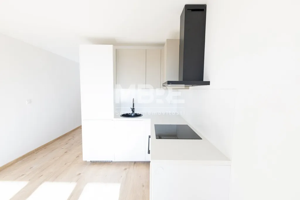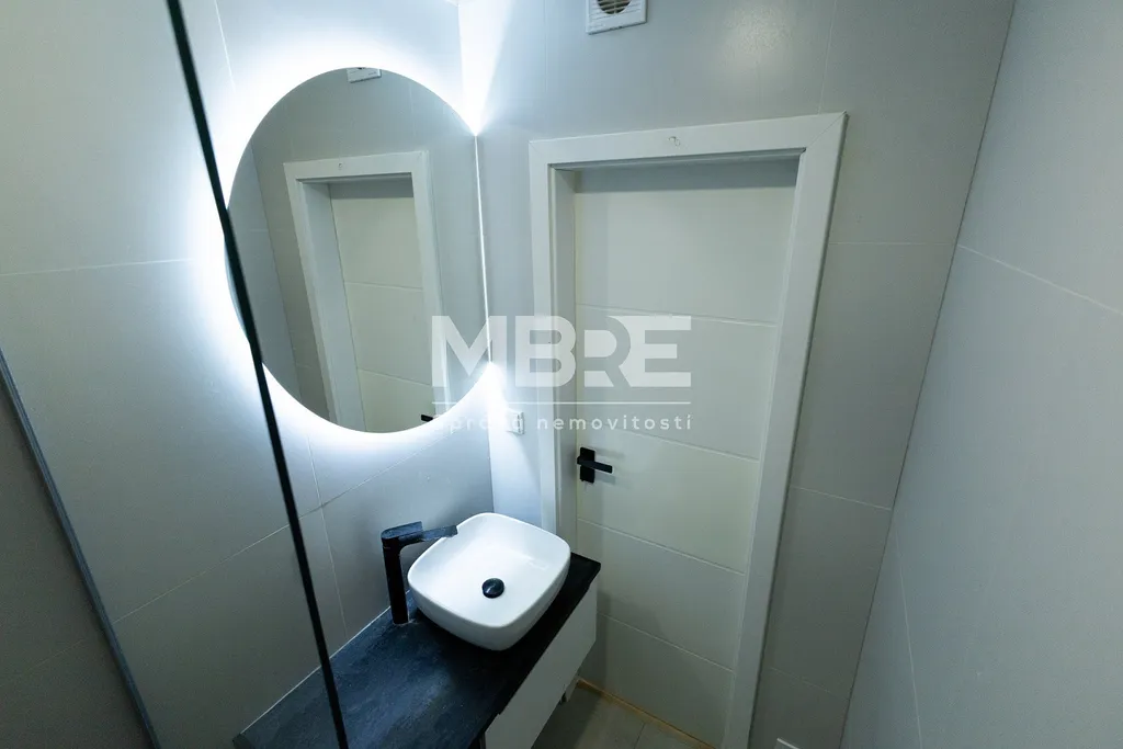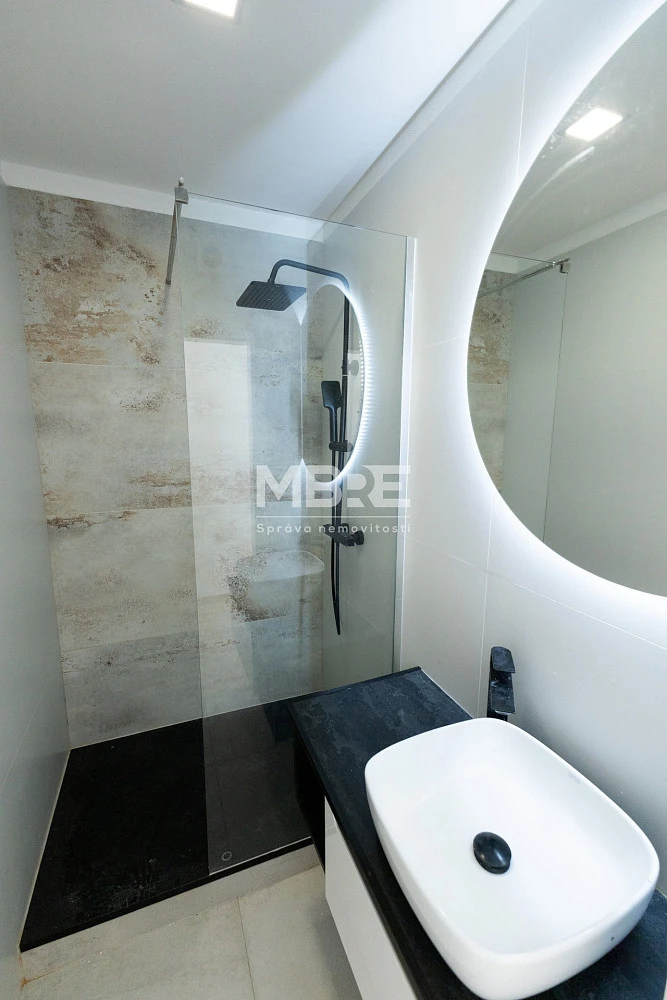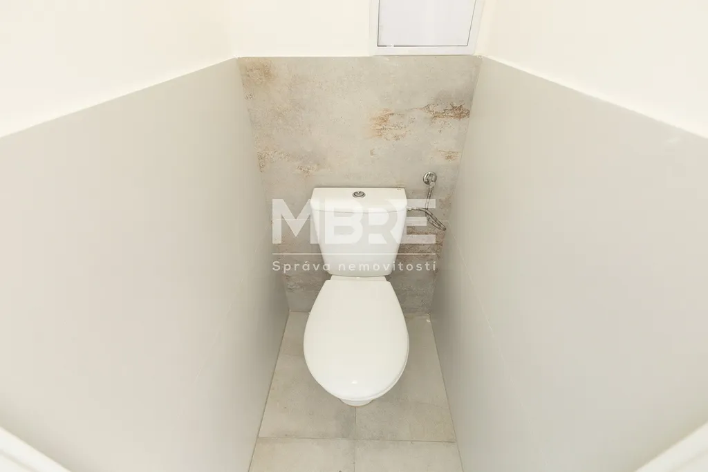 Stylová kuchyňská linka s vestavnými spotřebiči je navržena tak, aby nezabrala zbytečně moc místa, ale zároveň poskytla pohodlí při vaření. Zděná koupelna je vybavena sprchovým koutem a nechybí ani samostatná toaleta.