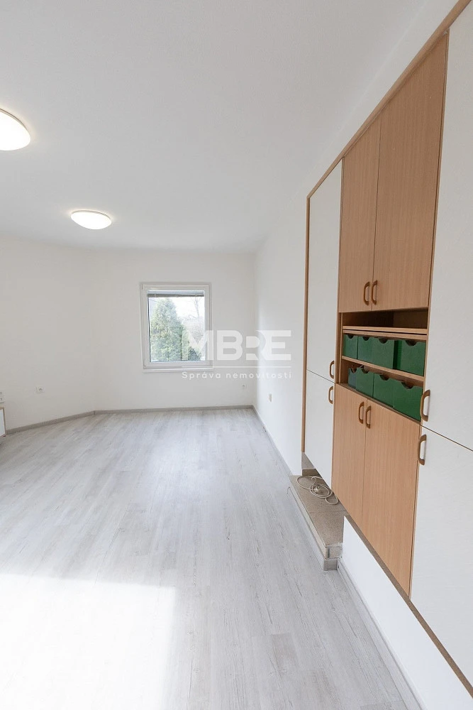 Praktickým benefitem jsou vestavěné skříně v pokoji, které poskytují dostatek úložného prostoru.