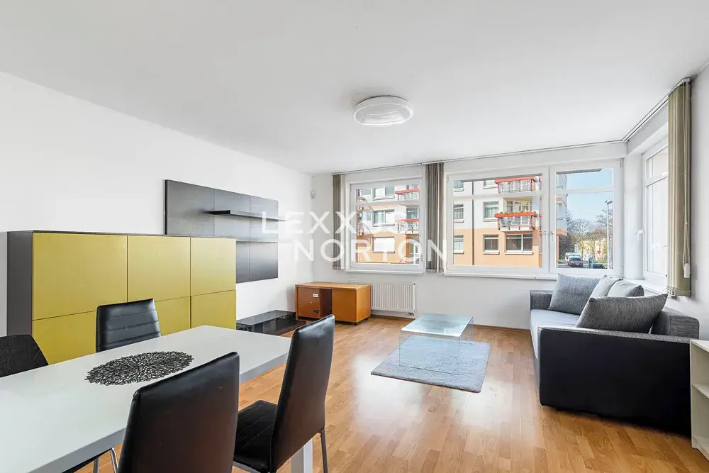 Nabízíme Vám prostorný byt s dispozicí 1+kk o výměře 46,80 m² umístěný v 1. nadzemním podlaží rezidenčního domu, v klidné části Prahy 8, v Libni.