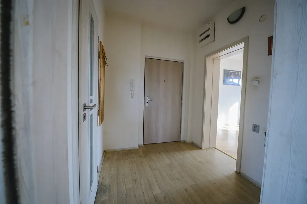 Byt je ve 2.patře s výhledem na město. Po vstupu ze společné chodby je menší předsíň. Z předsíně je