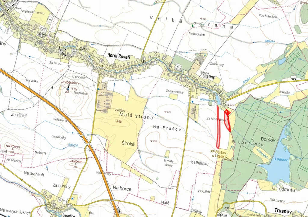 V katastrálním území Litětiny nabízím k prodeji soubor pozemků ve výlučném vlastnictví.
