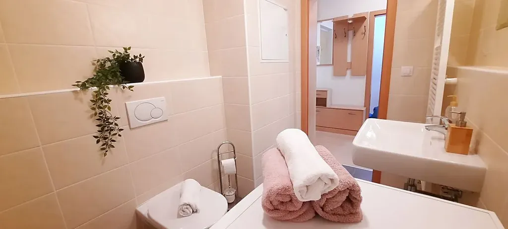Dům z roku 2009 je zcela bezbariérový, s kolárnou, kočárkárnou i prádelnou. Pod bytem jsou garáže a sklepy, takže byt působí vyvýšeně a klidně.