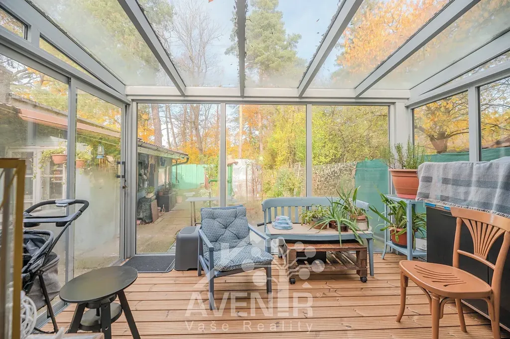 Velkým benefitem domu je prosklená zimní zahrada o ploše 5 m² navazující na obývací pokoj, která je umístěna v zadní části domu směrem do zahrady. Tento prostor je celý prosklený, má krásnou dřevěnou podlahu a vytváří velmi příjemné místo pro posezení, odpočinek nebo stolování s výhledem do zeleně. Díky ní dům získává další obytný prostor a příjemné propojení interiéru se zahradou.