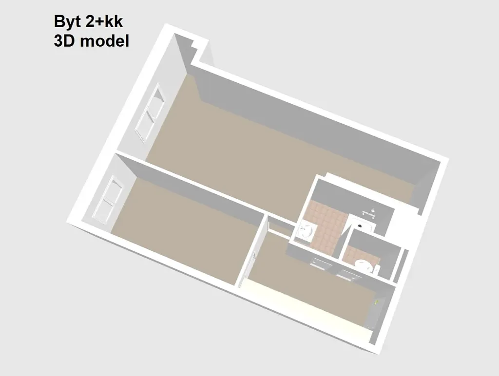 BYT 2+kk má plochu 50 m2 a nachází se v 1. NP. (přízemí) bytového domu. Orientace oken je na západ. Byt je v dobrém stavu s možností okamžitého bydlení či pronajmutí. V bytě může zůstat částečné vybavení.