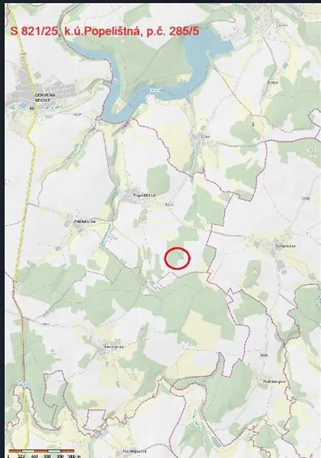 Jedná se o prodej lesního pozemku parc. č. 285/5 o výměře 308 m2, úzkého tvaru, situovaného východně od obce Popelištná v komplexu privátních lesů. Jedná se o bezlesí - nezpevněná cesta zarostlá travou a buření, na okraji s několika smrky.