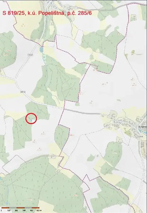 Jedná se o prodej lesního pozemku parc. č. 285/6 o výměře 48 m2, úzkého tvaru, situovaného východně od obce Popelištná, obklopeného privátními lesy. Jedná se o bezlesí navazující na cestu.