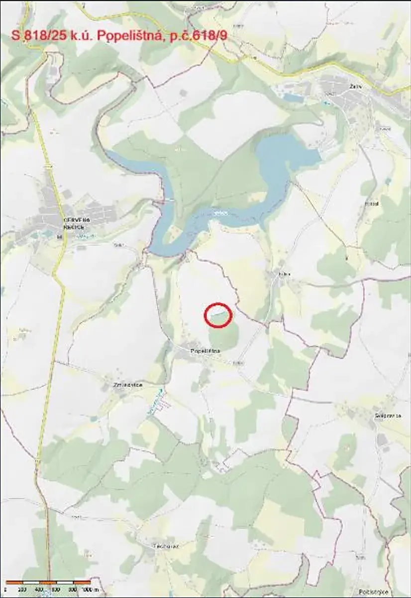 Jedná se o prodej lesního pozemku parc. č. 618/9 o výměře 496 m2, úzkého tvaru, situovaného severně od obce Popelištná, obklopeného privátními lesy. Jedná se o bezlesí, v reálu nezpevněná cesta s porostem několika bříz.