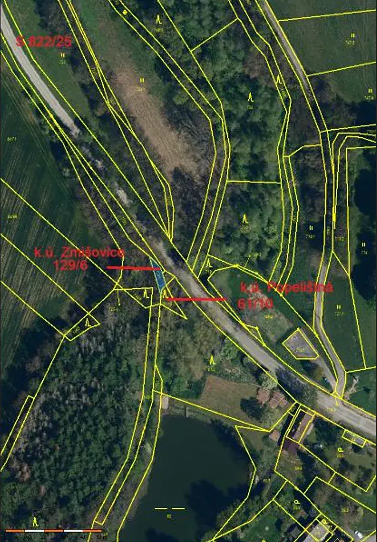 Jedná se o prodej 2 na sebe navazujících pozemků (lesního pozemku a pozemku ostatní plochy) o celkové výměře 136 m2, při SZ okraji obce Popelištná.