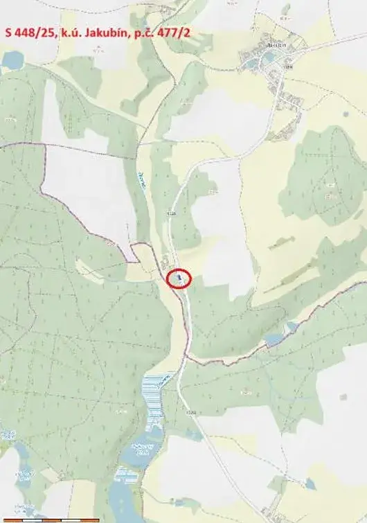 Jedná se o prodej lesního pozemku parc. č. 477/2 o výměře 144 m2. Ve skutečnosti jde o pás mezi silnicí a lesem, který je z velké části zarostlý buření.