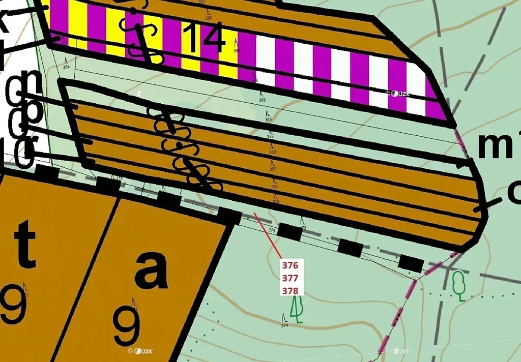 Lesní pozemky o výměře 1703 m2, parcelní čísla 376, 377, 378, podíl 1/1, katastrální území Hradčany na Moravě, obec Hradčany, obec s rozšířenou působností Přerov, okres Přerov, Olomoucký kraj. Po těžbě.