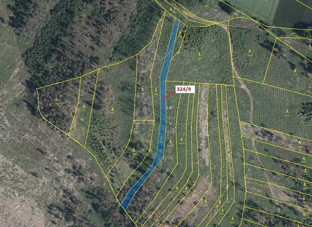 Lesní pozemek o výměře 1978 m2, parcelní číslo 324/9, podíl 1/1, katastrální území Chotěbudice, obec Chotěbudice, obec s rozšířenou působností Moravské Budějovice, okres Třebíč, Kraj Vysočina. Po těžbě.