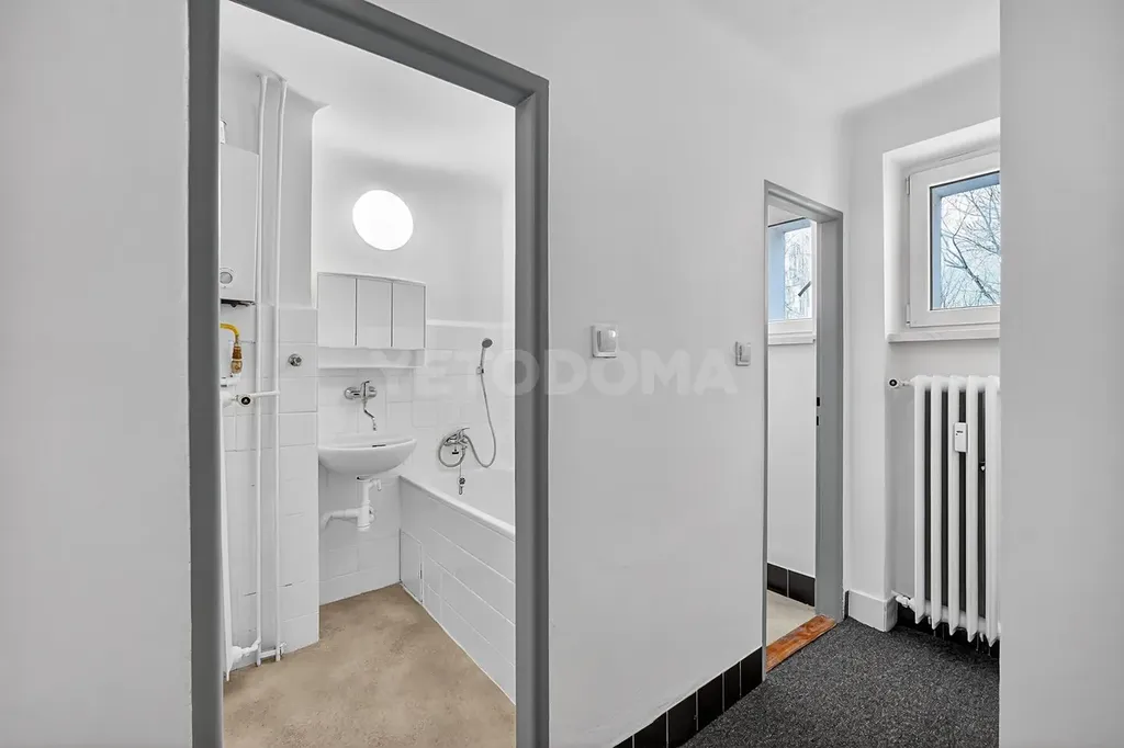 Součástí bytu je kuchyňská linka s plynovým sporákem. Koupelna disponuje vanou, WC je samostatné. Ohřev vody zajišťuje plynový ohřívač. Velmi praktickým prvkem je vlastní spíž přímo v bytě, která šetří místo v kuchyni.