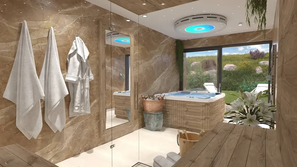 Součástí apartmánu je finská sauna s podlavicovými kamny pro komfort,dále vířivka s hydromasáží pro komfort na únavu a stres.Jedinečnou atmosféru Vám vytvoří elektrický krb,který zajistí výmečné chvíle bez starostí o dřevo a údržbu.Dubové podlahy a velkoformátová dlažba vytvoří krásnou dekoraci a útulnost apartmánu.Velice nadstrandartní a stylové provedení a zařízení s moderními systémy vytvoří příjemné zázemí koupelny a toalety.Vybrat si můžete apartmán dle svých představ o vybavení,umístění i ceně.Veškeré informace v RK.