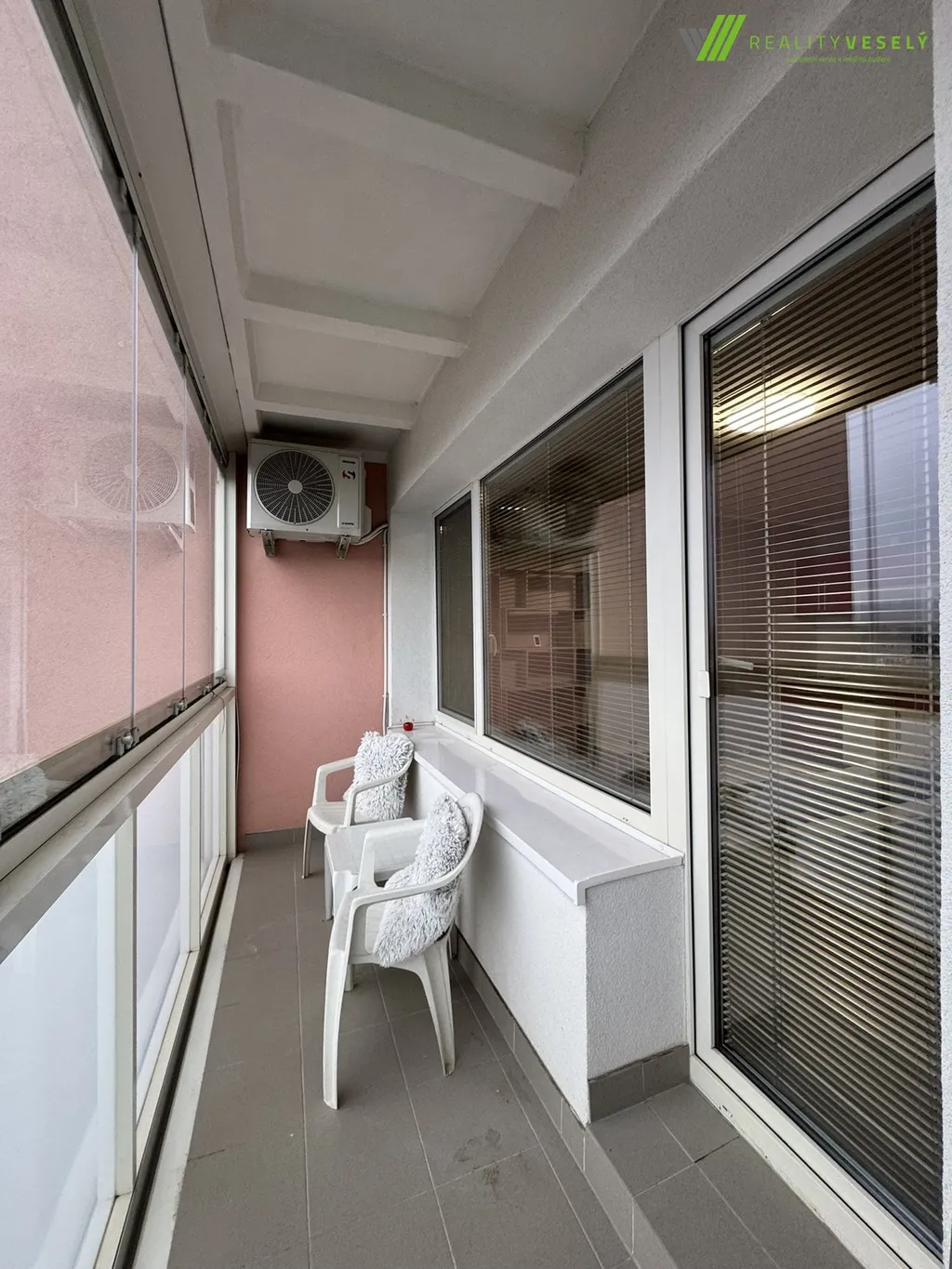 Bytová jednotka disponuje užitnou plochou přes 38 m², ke které náleží nadstandardně prostorná, zasklená lodžie o výměře 5 m². Interiér prošel rekonstrukcí, která kladla důraz na maximální využití prostoru a moderní standardy bydlení. Hned po vstupu vás uvítá praktická předsíň, ze které je přístup do koupelny vybavené sprchovým koutem, umyvadlem, toaletou a pračkou. Velkým benefitem je samostatná komora přístupná přímo z chodby, která v bytě zajišťuje dostatek úložných prostor pro sezónní věci či domácí potřeby.