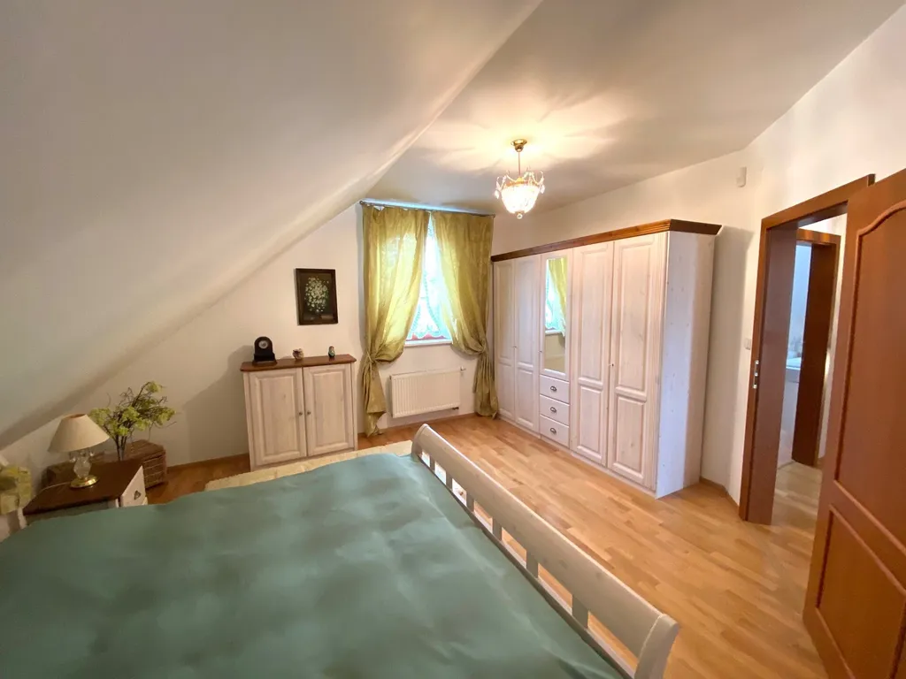 V patře domu najdete pět prostorných ložnic, které nabízejí dostatek místa pro děti, hosty nebo domácí pracovnu. O ranní shon se bát nemusíte – k dispozici jsou zde hned tři koupelny. Dva z pokojů mají navíc přístup na balkon, odkud je příjemný výhled do okolní zeleně a okolní zástavby moderních vil.
