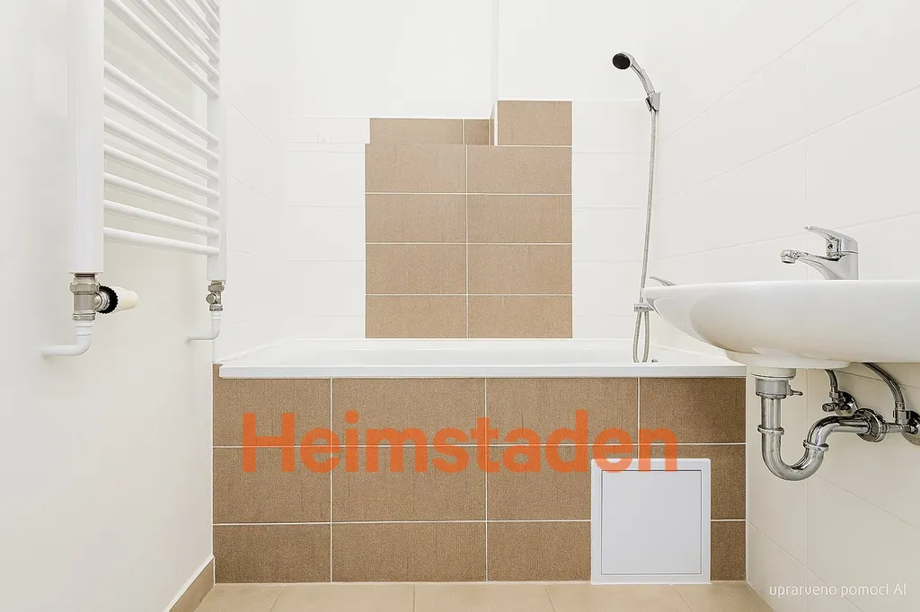 Koupelna je samostatná, vybavená vanou a nabízí také místo pro připojení pračky.