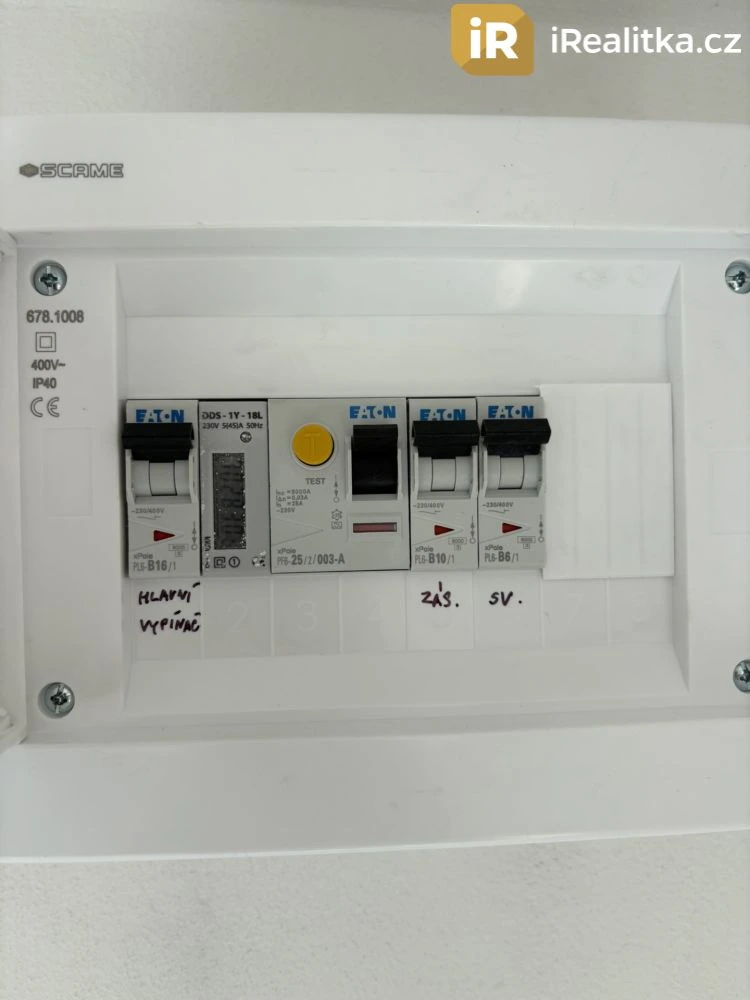 - kompletně nová elektroinstalace uvnitř garáže (rozvody, světla, zásuvky, jističe, chránič) vč. revizní zprávy