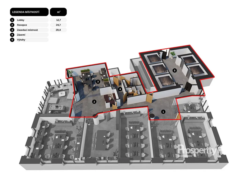 Nájemci mohou využívat společné zázemí, které zahrnuje: