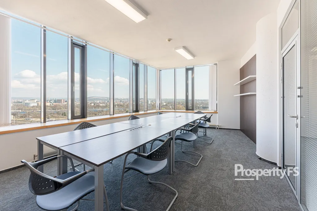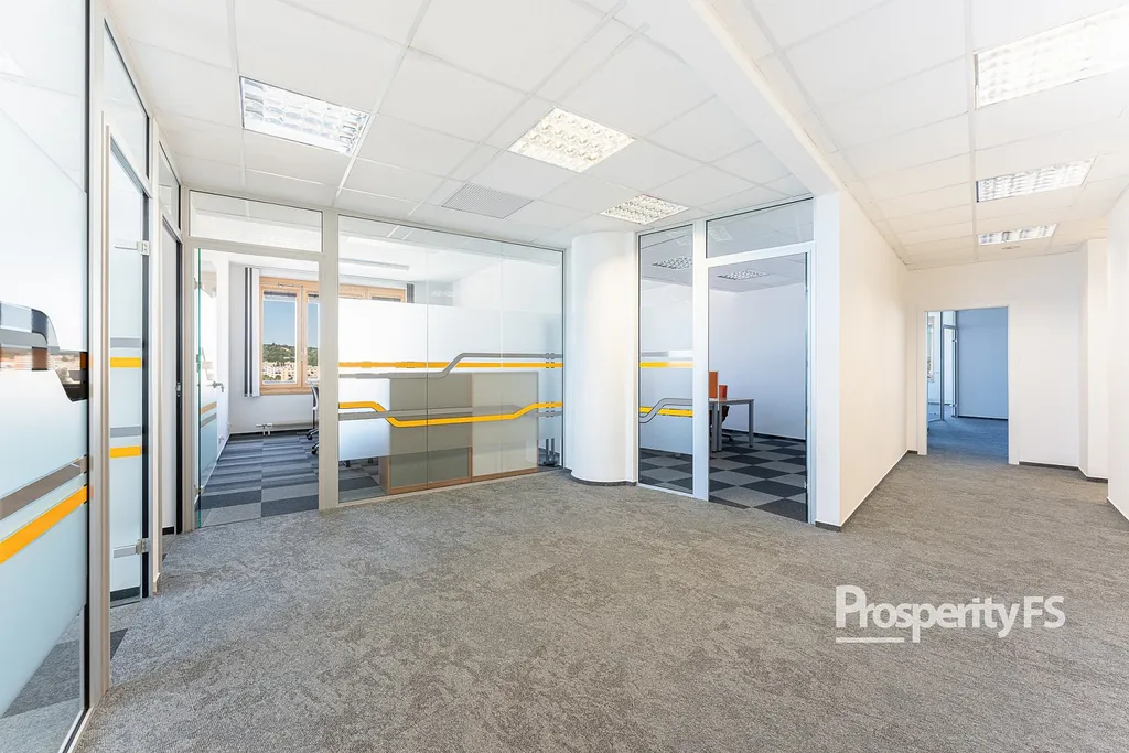 Kancelář je plně klimatizovaná, vybavená žaluziemi a vstup je zajištěn přes čipovou kartu.