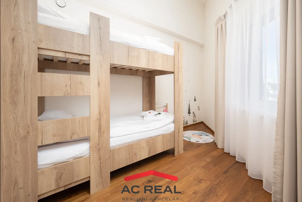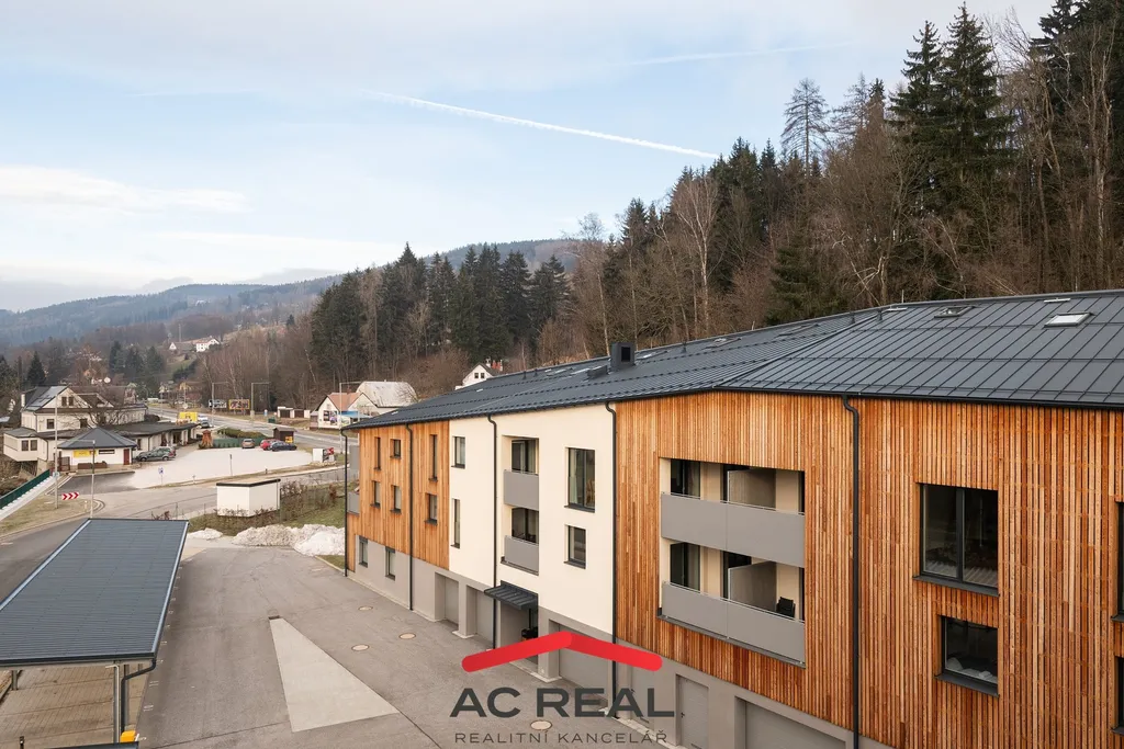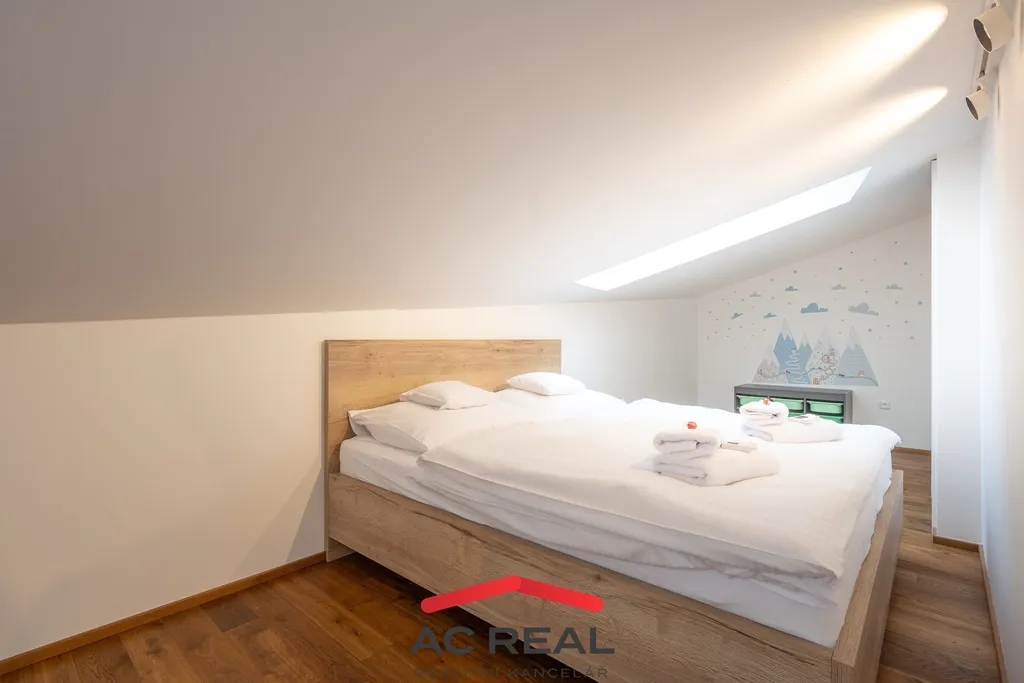 Útulný a dispozičně velmi zajímavý mezonetový apartmán trojúhelníkového tvaru se dvěma koupelny a dětským pokojem je ideálním druhým domovem pro rodinu. Má dispozici 4kk, 2 samostatné wc a budete se v něm cítit jako na moderní chalupě.
