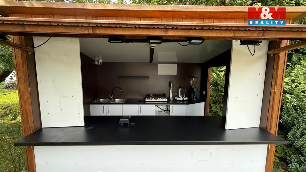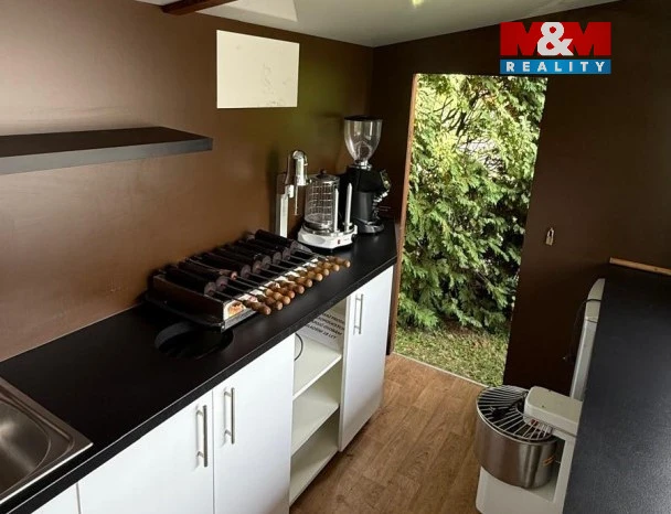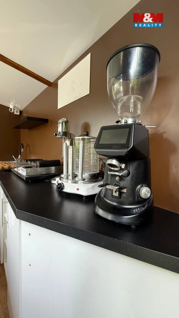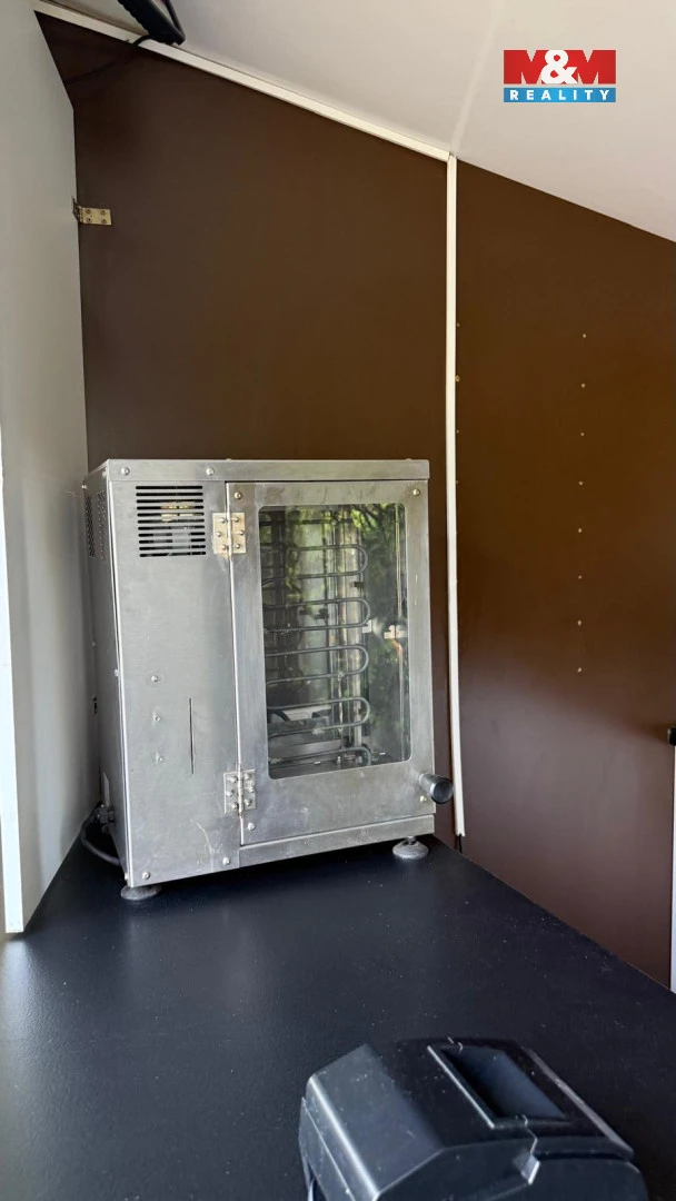 Stánek ve velmi dobrém stavu. Vybavení stánku: kuchyňská linka s dvojitým dřezem, pokladní systém (pokladna + tiskárna účtenek), lednice + mrazák, profesionální hnětač těsta (vhodný pro trdelníky i pizzu), jednopákový kávovar Astoria TOUCH SAE/1 (po kompletním pravidelném servisu 8/25), profesionální mlýnek na kávu, pec na 6 trdelníků + formy, ohřívač polev na trdelníky, hotdogovač, milkshaker, dvoukompresorový stroj na točenou zmrzlinu, drobné gastro vybavení (gastronádoby, stěrky apod.) a
